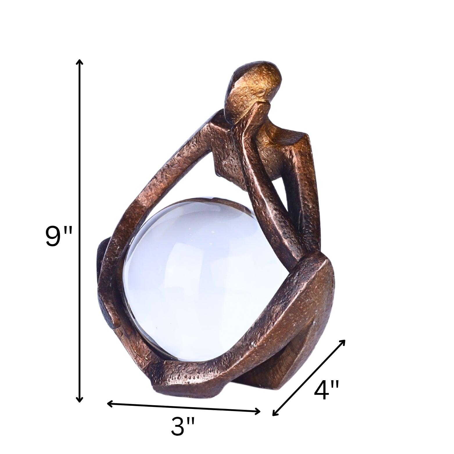 A modern art-inspired sculpture featuring a contemplative figure holding a clear crystal sphere. Perfect for adding a touch of elegance and intellect to desks, bookshelves, or coffee tables.